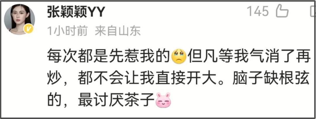 张颖颖得知此事之后也直接炸毛,发文说马筱梅的回复很无脑,不聪明,自己高看她了。甚至还说马筱梅是“皇家儿媳”,是被拉出来给汪小菲和张兰挡枪的。